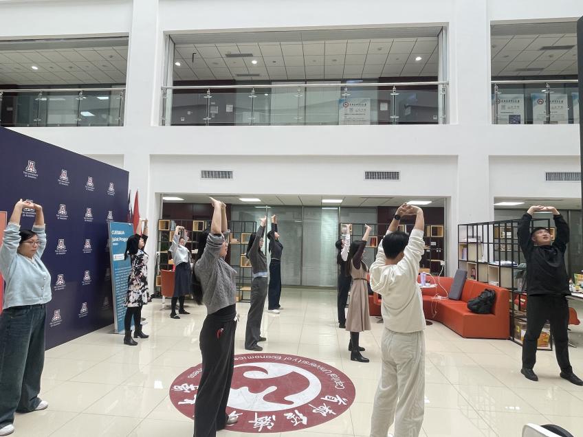 2025年11月26日,法学院工会在博远楼三楼活动空间成功举办八段锦学习活动,校体育部教师钟鸣远现场教学,吸引了多名教职工积极参与。