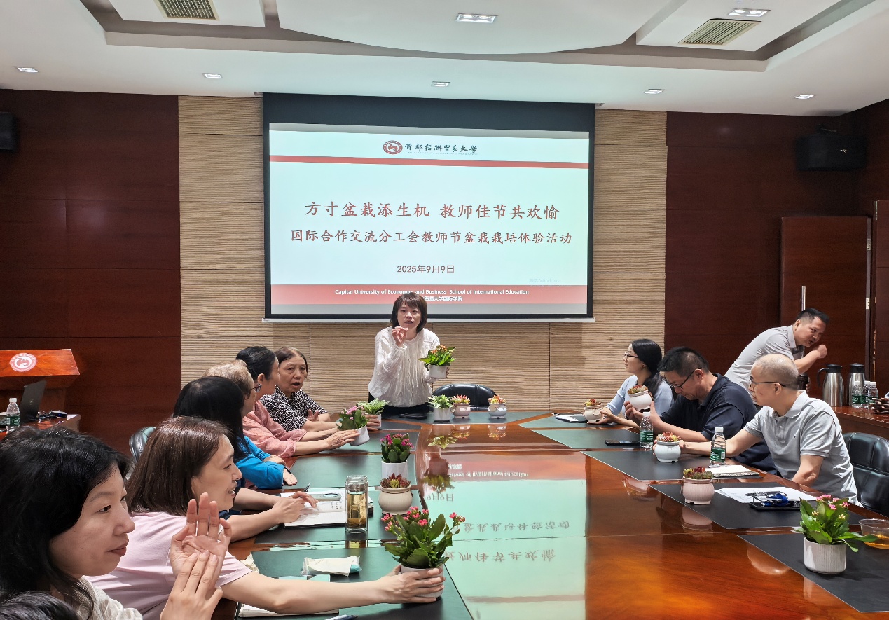 在第41个教师节来临之际,为丰富教职工文化生活、传递节日关怀,国际合作交流分工会于9月9日组织开展“方寸盆栽添生机,教师佳节共欢愉”主题盆栽栽培体验活动,为教职工送上了节日的独特祝福。
