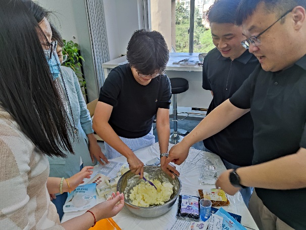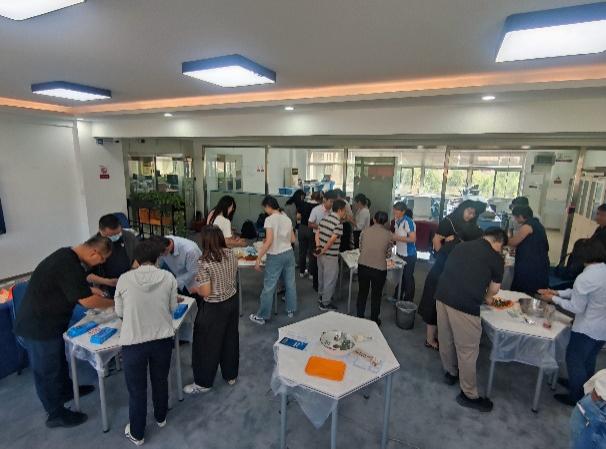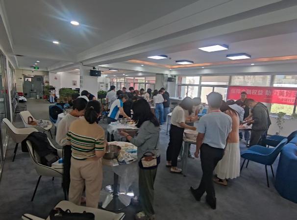 活动现场气氛热烈。在专业老师的耐心指导下,大家兴致勃勃地投入到月饼制作中,从揉面、包馅到压模成型,每一步都一丝不苟。老师们相互切磋、分享技巧,欢声笑语不断。一个个造型精美、寓意吉祥的月饼在手中诞生,承载了大家对中秋佳节的美好祝愿。