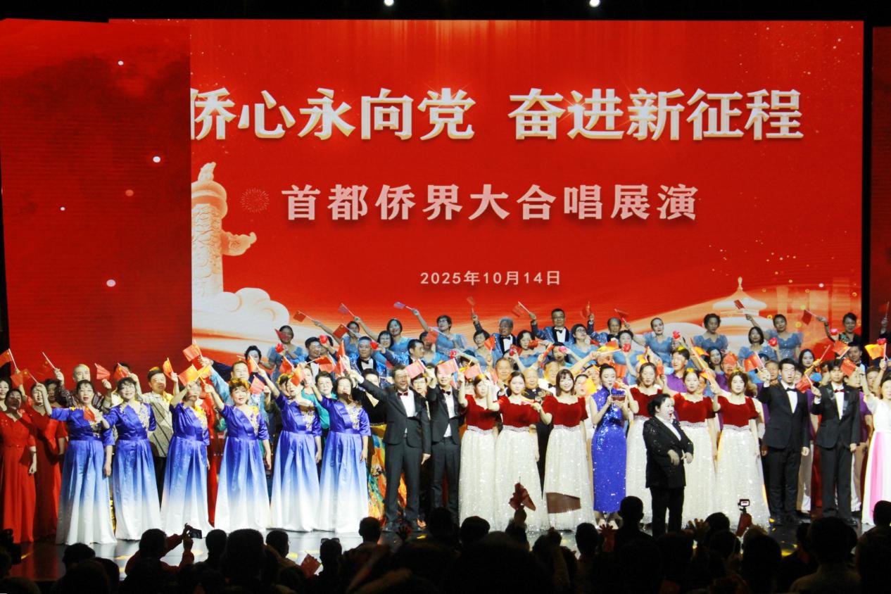 10月14日下午,“侨心永向党 奋进新征程”首都侨界大合唱展演活动在北京民族文化宫举行。来自首都各界的800余名侨界代表齐聚一堂,作为唯一一所市属高校代表,首都经济贸易大学华侨学院“青春侨之声”合唱团与清华北大合唱团同台演出。共同以合唱为纽带凝聚侨心侨力,用歌声表达听党话、跟党走、共赴新征程的坚定决心。华侨学院党委副书记、分工会主席蔡丹担任领队。
