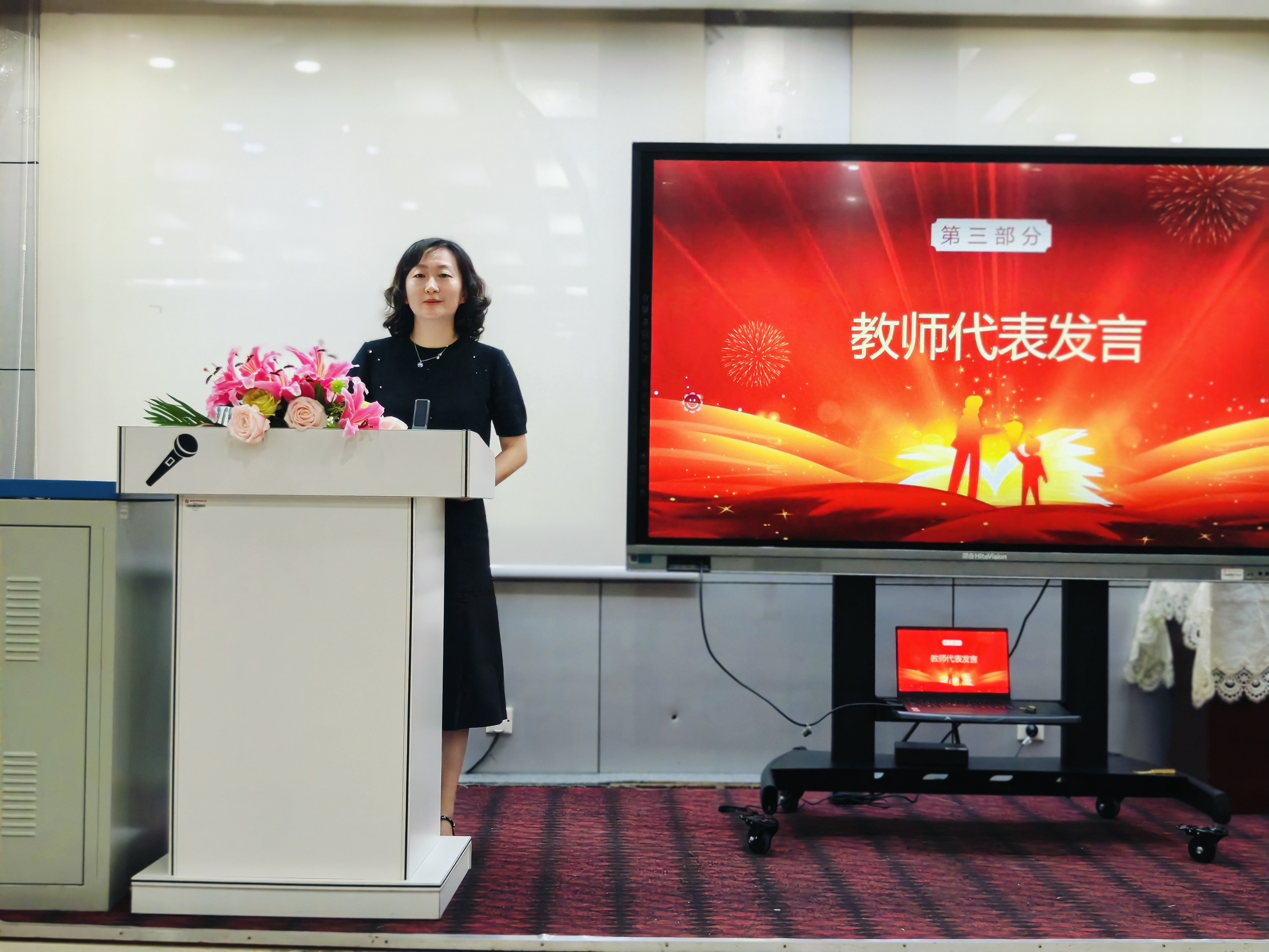 张薇作为教师代表,分享了其参赛、日常教学、学生培养工作中积攒的宝贵经验,向给予她无私帮助的领导和同事们表达了诚挚谢意。她表示,作为一名教育工作者,深感责任重大、使命光荣,将继续以饱满的热情投身于教育事业,为学院的发展贡献智慧和力量。