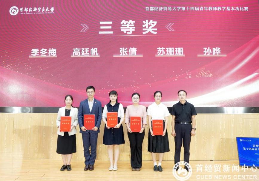6 月 11 日,首都经济贸易大学第十四届青年教师教学基本功比赛决赛在博远楼新闻发布厅隆重举行。经济学院青年教师高庭帆凭借扎实的教学功底、清晰的教学逻辑与生动的课堂呈现,最终斩获大赛三等奖,充分展现了经济学院青年教师过硬的教学素养与良好的专业风貌。
