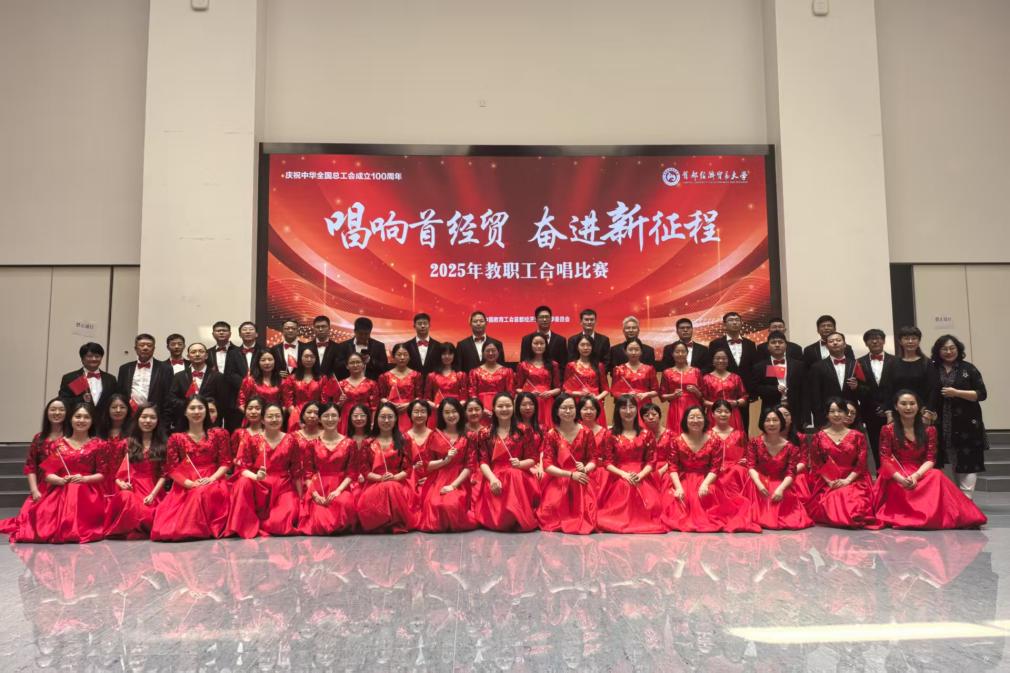 为庆祝中华全国总工会成立100周年,5月28日下午,由校工会主办的“唱响首经贸 奋进新征程”2025年教职工合唱比赛在校本部博远楼琢玉讲堂隆重举行。来自全校各分工会、直属工会小组的22支代表队齐聚一堂,以嘹亮歌声礼赞时代风采,展现奋进力量。经济学院教职工合唱团凭借出色表现荣获优秀奖,用激情与深情唱响了《爱我中华》的动人篇章。