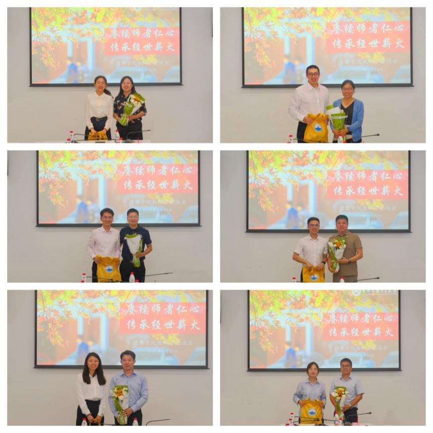 学院一贯坚持“传帮带”的优良传统,充分发挥老教师丰富教学经验的优势,帮助青年教师更好地适应身份转变,更快融入经济学院大家庭中,学院为新入职的六位青年教师配备了各自的导师,并举行拜师仪式。新教师为导师送上鲜花,导师回赠礼物,并给予真挚的祝愿,希望他们在新时代适应教师身份,与时代同频共振,共创经济学院美好未来。