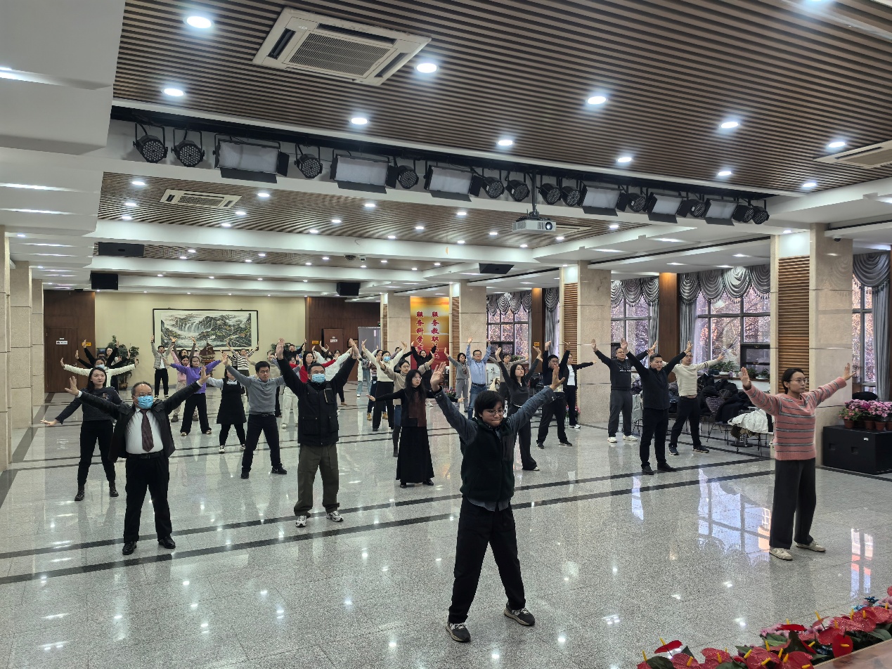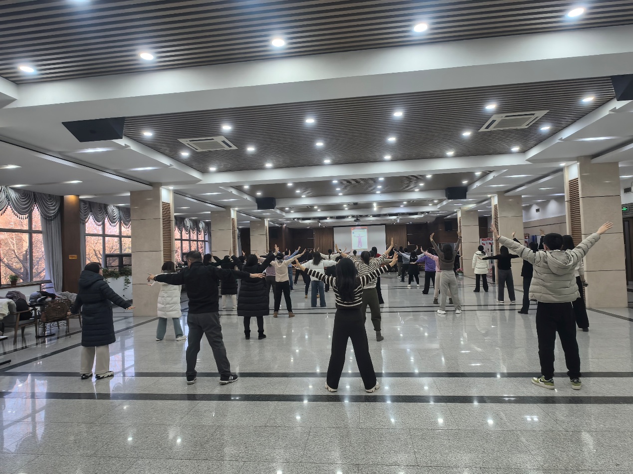 2025年12月3日,为丰富教职工精神文化生活,增强团队凝聚力,会计学院分工会精心组织八段锦集训与排练活动,全体教职工踊跃参与,以饱满的热情投入到这场传统养生文化与团队协作相结合的健康行动中。