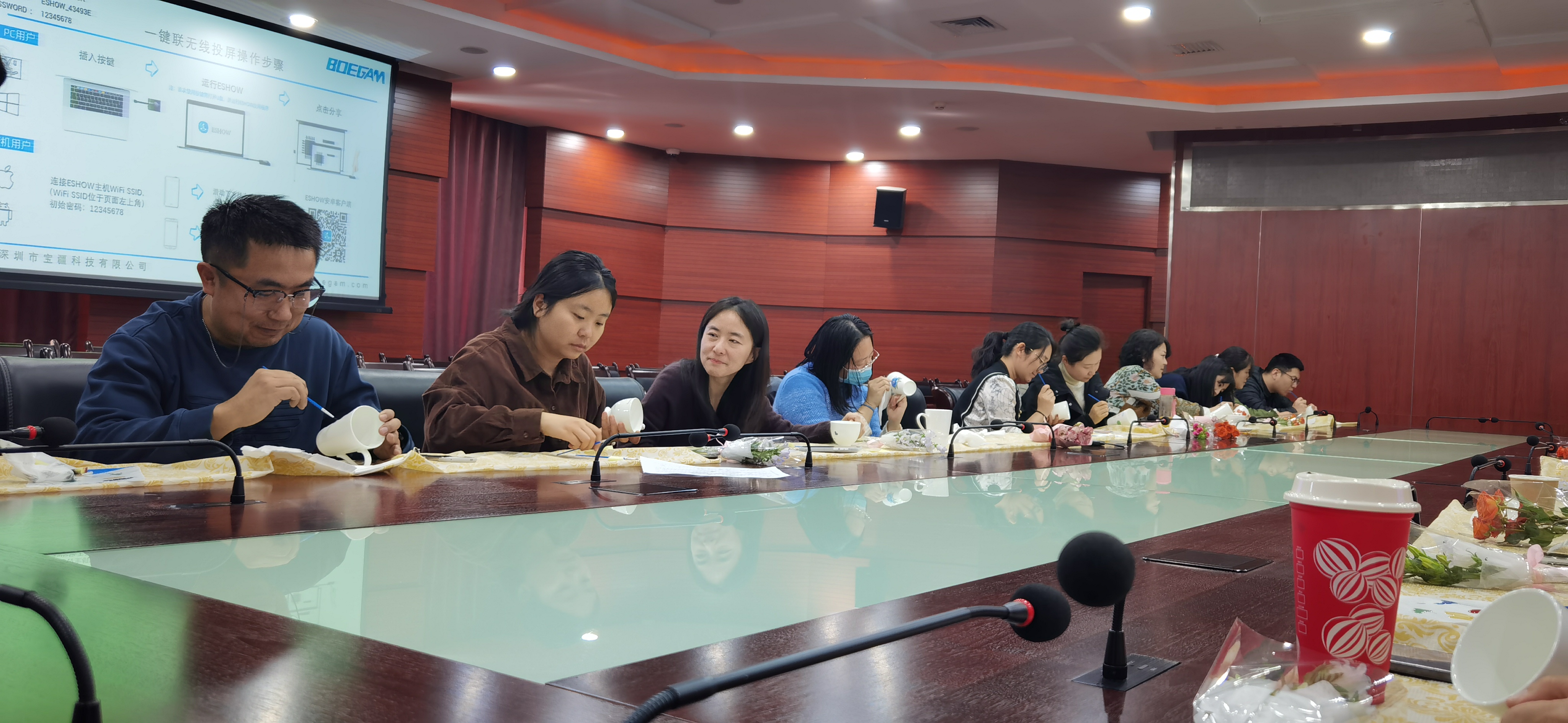 其工作流程是,老师们在瓷器釉面上彩绘自己心仪的漂亮图案,再由专业人士送到烧窑车间进行烧制定型。经统计,学院共有24名老师踊跃报名,其中还有不少男教师到现场为女教师们“加油”“捧场”,现场气氛欢乐融洽。