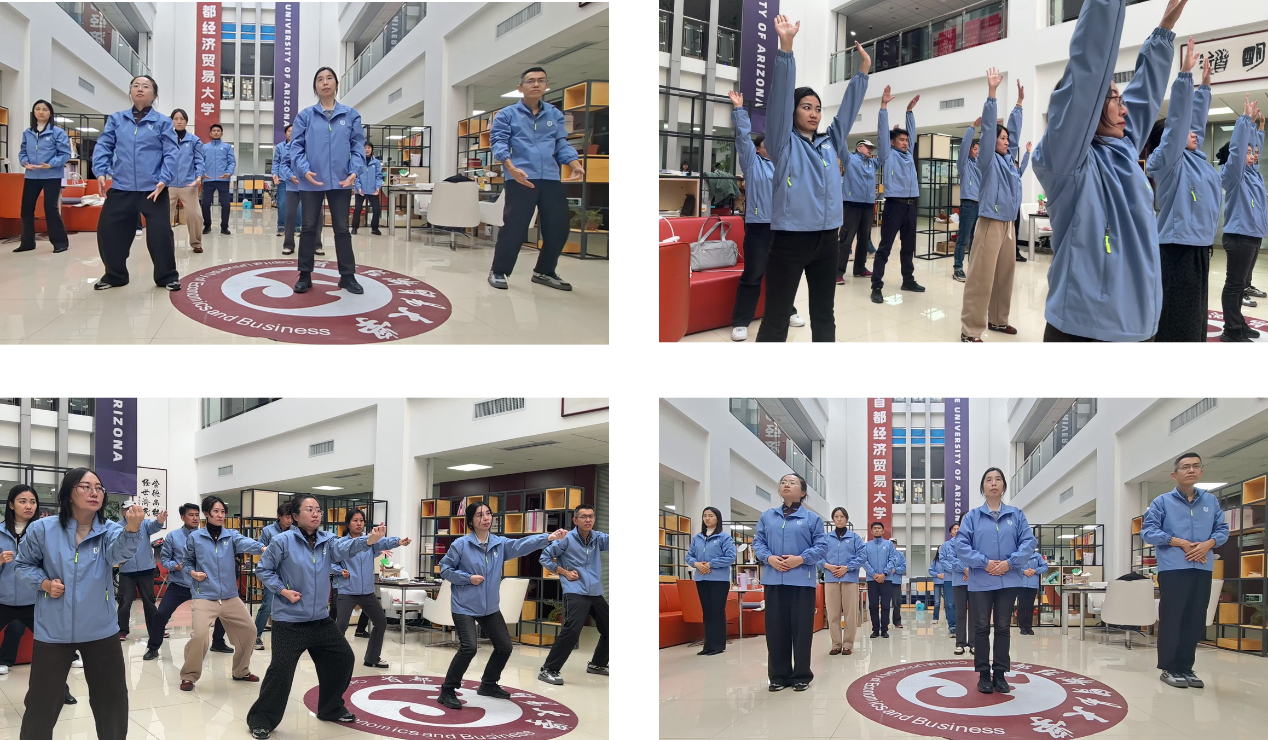 随着舒展的动作配合沉稳的呼吸节奏,参与的老师们逐渐放松紧绷的肩颈,动作在不断练习中变得协调自如。部分老师表示,平日科研任务重,在电脑前久坐时间长,能在集体练习中让身体“慢下来”“松一松”,是一种难得的调节方式,也让大家意识到传统健身功法对于身心平衡的积极作用。
