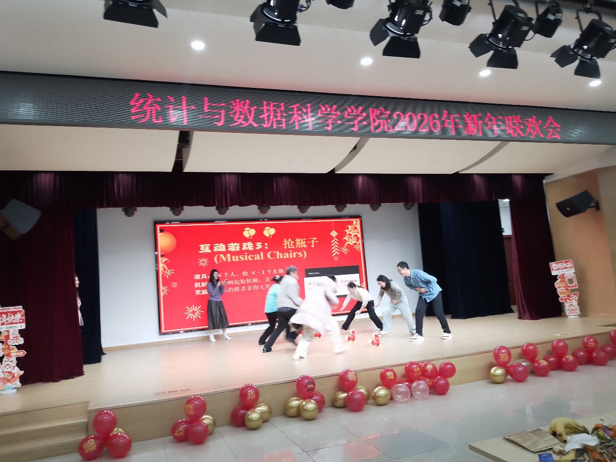 近日,统计与数据科学学院新年联欢会在热烈欢快的氛围中圆满落幕。1月8日下午,学院全体教师欢聚在大学生活动中心,以丰富多彩的节目、趣味盎然的游戏,共话过往成就,共迎新年。活动现场暖意融融、笑语盈盈,充分展现了学院团结奋进、积极向上的精神风貌。
