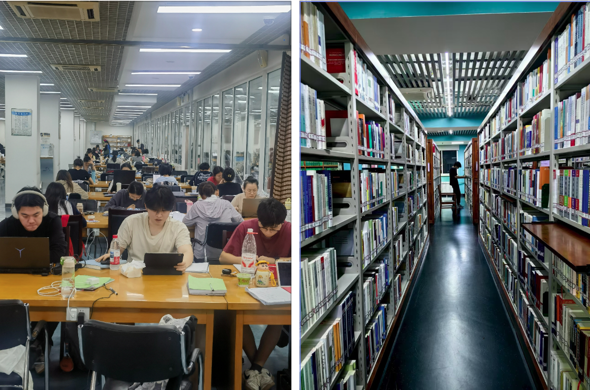 “我的工作环境”主题作品呈现出图书馆的独特美学:阳光透过玻璃窗洒满工作区、自习区的光影、古籍修复室里的镊子与宣纸、图书借阅师生互动的笑脸以及自助设备前师生的凝神专注。这些影像不仅记录了硬件设施的升级,彰显图书馆从“藏书楼”到“学习空间”的转型,也记录了图书馆成为校园文化育人的重要载体。