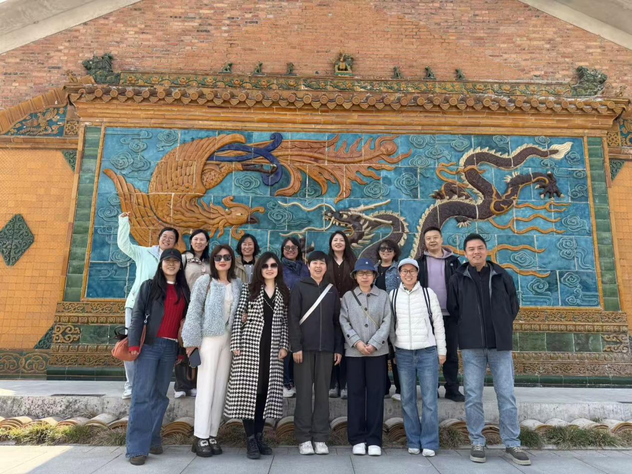 活动首站来到有着“皇家琉璃之乡”美誉的琉璃渠村,这里作为中国历史文化名村,承载着深厚的非遗文化底蕴。教职工们沿着古村落街巷漫步,先后参观了三官阁过街楼、琉璃厂商宅院等古迹,重点走进村内琉璃博物馆,沉浸式感受非遗文化与外语传播的碰撞。该博物馆以琉璃文化传承为核心,陈列着明清琉璃珍品、古法烧制工具及技艺史料,最具特色的是馆内所有展品介绍均采用中英文对照呈现,从琉璃烧制工序、历史渊源到纹饰寓意,每一段解说都兼顾专业性与中外表达的精准性。作为外语教育工作者,教职工们格外关注中英文解说的措辞差异,纷纷驻足探讨术语翻译的技巧,交流如何用更地道的外语传递琉璃文化的精髓,在观赏精美琉璃饰件、感受国家级非物质文化遗产匠心与魅力的同时,也结合自身专业,为传统文化的国际化传播积累了鲜活素材,在山水相依的古村景致中,实现了文化体悟与专业思考的双重收获。