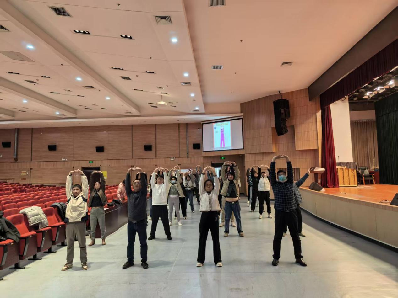 与此同时,分工会也在校本部与红庙校区组织开展了八段锦健身活动。现场由小教员细致讲解八段锦的四种基本手形及动作分解要领,并进行示范教学。职工们神情专注,动作舒缓连贯,在悠扬乐声中共同体验传统健身的独特韵味。