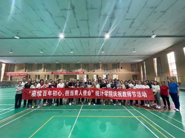 2021年9月9日中午15时,统计学院在乒羽馆举行“赓续百年初心 担当育人使命”教师节庆祝活动集体健身活动。