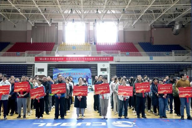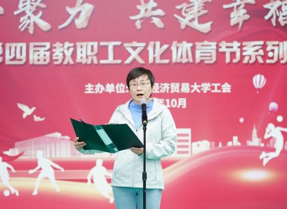 10月22日,为庆祝中华人民共和国成立75周年,“凝心聚力 共建幸福家园”首都经济贸易大学第四届教职工文化体育节在学校体育馆拉开帷幕。校党委书记王文举,党委副书记、校长吴卫星,党委副书记、工会主席徐芳,党委副书记欧阳沁,党委常委、纪委书记毛百战,党委常委、副校长姚林修,党委常委、副校长李鲲鹏出席开幕式。开幕式由校工会常务副主席曾庆梅主持。
