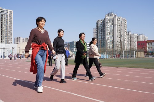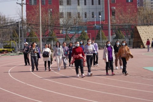 女教职工在分工会主席的组织下,三五成群围绕操场跑道边走边谈,体验着徒步运动的乐趣,在校园里形成一道靓丽的风景线。大家沐浴着温暖的阳光,迈着矫健的步伐,畅谈着工作与生活,尽情抒怀、释放压力,现场氛围轻松而愉悦。