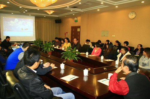 首先,李民代表双方工会讲话,李民讲到,在学校和电视台领导的关怀下,两个单位的工会为双方单身职工搭建了这个交友的平台,希望大家通过接触,增进相互之间的了解与沟通,并祝愿大家有缘相会,心想事成。