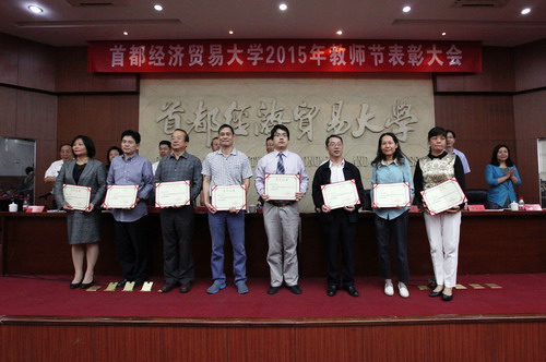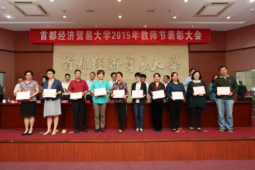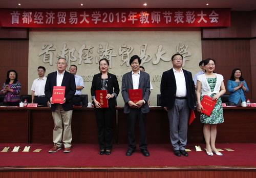 表彰结束后,记者采访了几位参会教师。文化与传播学院的杨景越老师,手捧学校表彰从事教育工作满三十年教职工的证书,非常激动,她认为,教育工作是一项神圣的职业,对个人的品德要求很高,她也谦虚地表示将继续朝着好老师的方向努力。统计学院聂力老师获得了2014年北京高校青年教师社会调研优秀项目一等奖,她认为,这个奖项是对青年教师的很大的鼓励,自己也会戒骄戒躁继续努力,和学校共同成长。参加表彰会的会计学院王茂林老师,是今年刚入职的新老师,他表示,很荣幸能够近距离地聆听这些优秀教师的发言,自己将以他们为榜样,对学生付出自己全身心的爱,同时,不断充实自己、与时俱进,将最新的、最鲜活的知识融入到教学实践当中去。