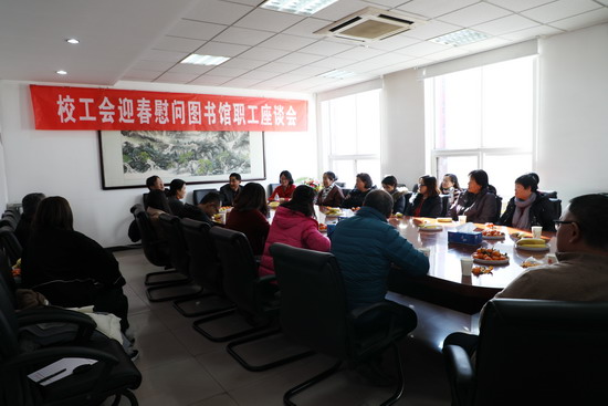 111日下午,校工会在工会会议室召开了迎新春慰问图书馆职工座谈会。图书馆党总支书记程显秋、图书馆馆长吴启富及部分图书馆职工参加了座谈会。座谈会由校工会副主席韩邦利主持。