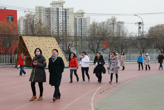 37日,校工会组织"健康生活快乐工作"121健步走活动。虽然天气有些阴冷,但抵挡不住女教职工们的热情,近500名女教职工迈着轻松的步伐,谈论着新学期的话题,三五成群地在学校运动场的跑道上健走。大家纷纷表示:健步走是一项有益身心的运动,简单易行,通过锻炼身体,以崭新的精神面貌迎接新学期。