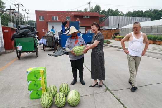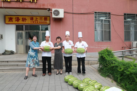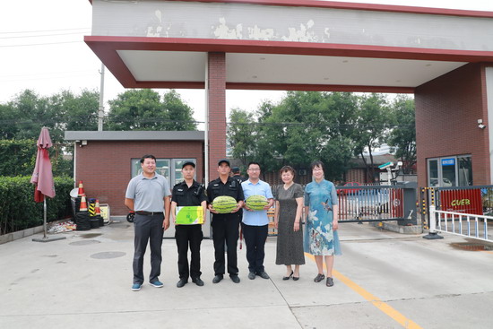 刚入暑伏,天气十分闷热,食堂的职工们依然在炉灶前为师生准备各种美味佳肴,绿化的职工们不怕脏不怕累地扮美校园的每一个角落,安保的职工们头顶烈日坚守校门确保师生的安全……为了给辛苦的职工们带来一丝清凉和温暖,校工会向我校工作在高温、室外的334名一线职工发放了西瓜、绿茶饮料等防暑降温慰问品。工会常务副主席刘俊虹、副主席刘颖走访慰问了校本部三餐厅、绿化队、南门、维动、北门、学生公寓的职工们,对大家在高温期间坚守岗位表示感谢,并叮嘱大家在做好本职工作的同时,也要合理安排作业时间,注重劳逸结合,克服高温酷暑,确保安全,做好各项后勤保障服务工作。职工们非常感谢校工会的关怀,在酷热的夏天感到一丝清凉,工作更有了干劲。