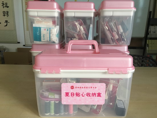 繁忙的工作中难免遇到小磕碰,炎热的夏天难免受到蚊虫叮咬,湿漉的雨季难免忘记携带雨具……为了更好地服务教职工,促进建家工作的深入开展,校工会在夏初之时,为各分工会教职工之家配备了收纳盒,内有创可贴、碘伏消毒液绷带纱布、医用棉签、紫草膏、驱蚊花露水等救急去暑及日常用品。校工会还为各分工会教职工之家、博学楼、博纳楼、博远楼配备了暖心伞。这些实用且方便的物品是校工会暖心工程及建家工作的一个体现,点滴之处深入人心,突出了工会的服务功能,进一步让教职工们体会到“家”的温暖。