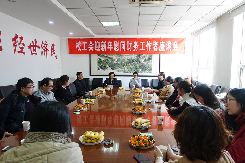 12月28日,校工会在工会会议室召开迎新年慰问财务工作者座谈会。校工会常务副主席刘俊虹、财务处处长夏颖,工会副主席韩邦利、财务处副处长王晓婷、陈学淼以及财务处教职工参加座谈会。会议由刘俊虹主持。