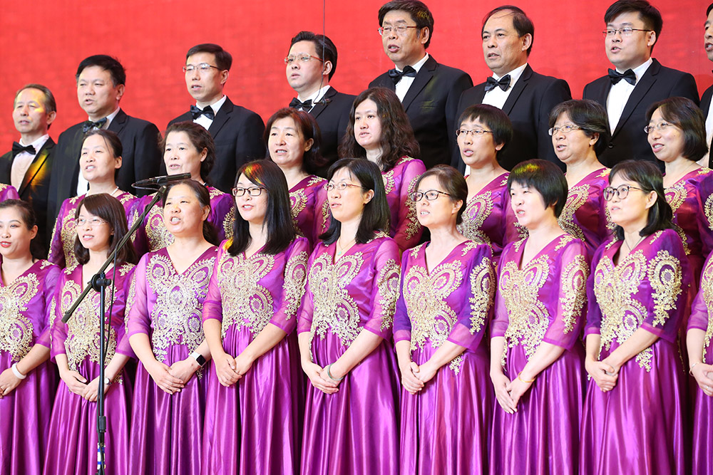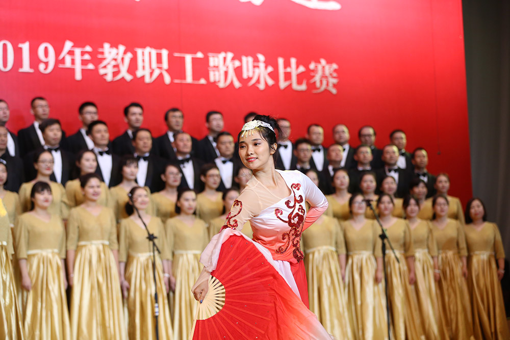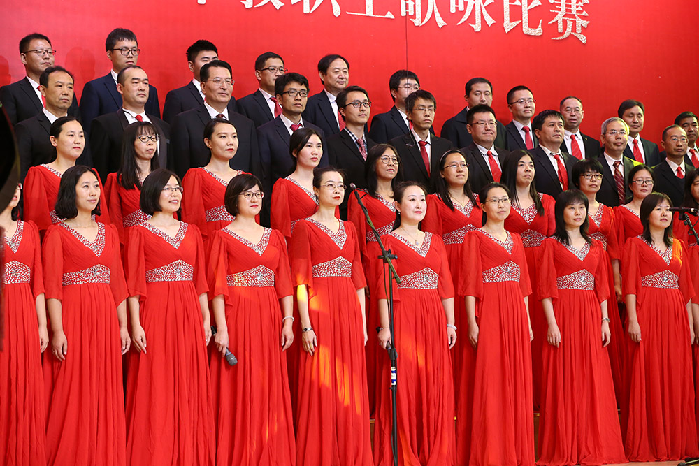 来自学校各分工会的23支代表队,身着统一服装,以整齐的队列、饱满的的精神面貌登场亮相,唱响了时代主旋律。《不忘初心》《没有共产党就没有新中国》《国家》《今天是你的生日》等一支支耳熟能详、雄壮豪迈的经典歌曲,凝聚了发展正能量,使广大教职工在气势恢宏、宛转悠扬的歌声中感受到党和国家提出的“不忘初心、牢记使命”的精神内涵。