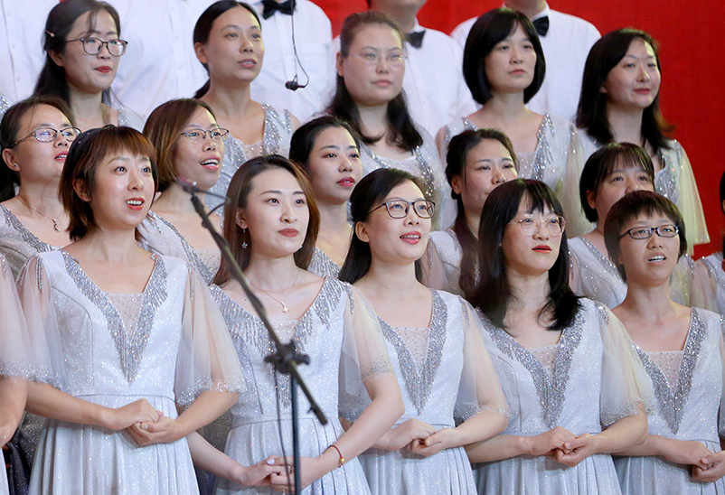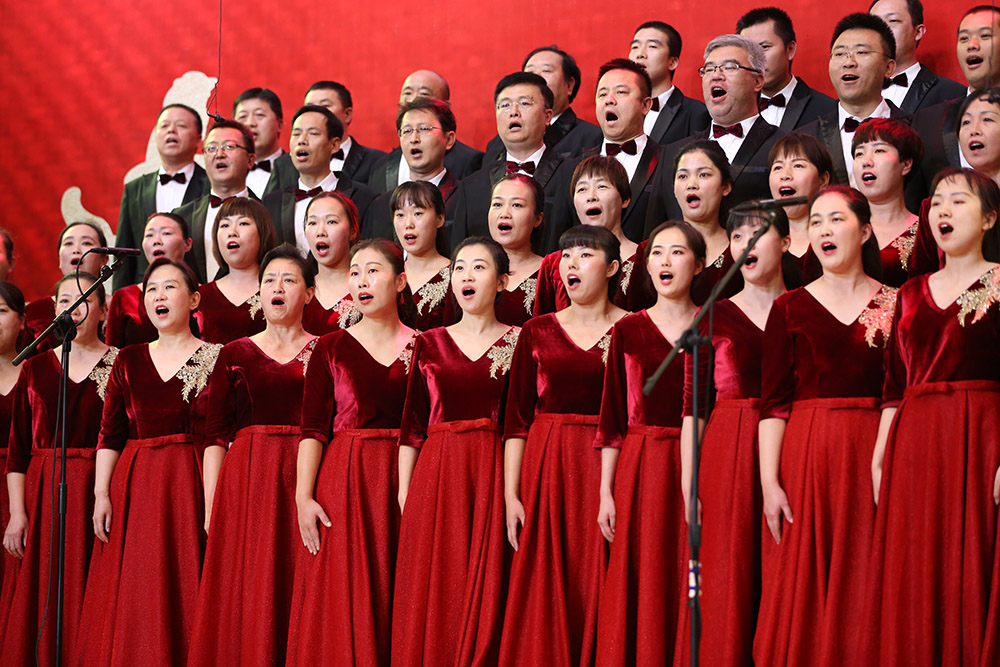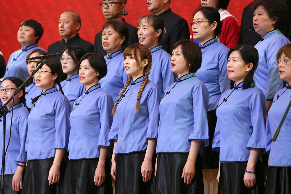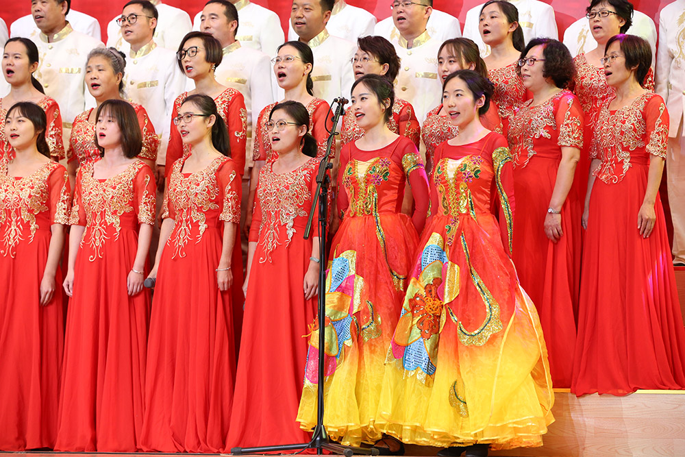 继续教育学院演唱的《中华崛起》和《游击队歌》,展现了中华儿女无比坚定的信念和决心