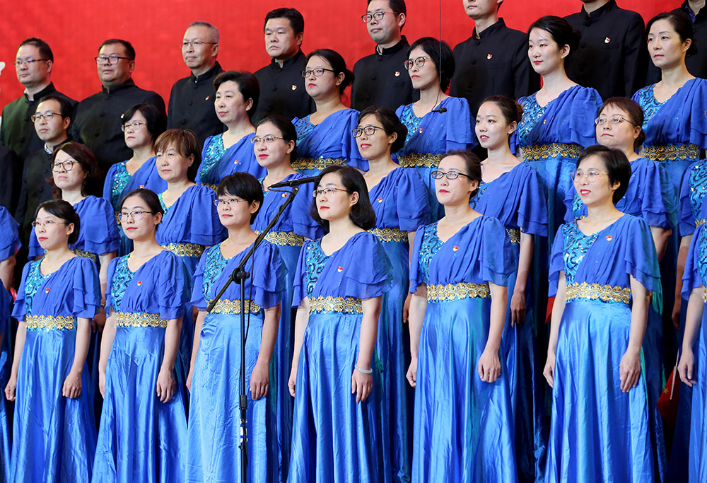 校部机关演唱的《不忘初心》气势恢弘,倾情演绎共产党人的初心和使命