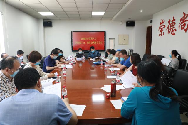 会上,两委会委员审查了替补“双代会”代表资格,听取了工会副主席韩邦利所做的第四届“双代会”筹备情况报告,审议并通过了《在首都经济贸易大学第四届教职工代表大会六次会议和工会会员代表大会五次会议上的工作报告》。