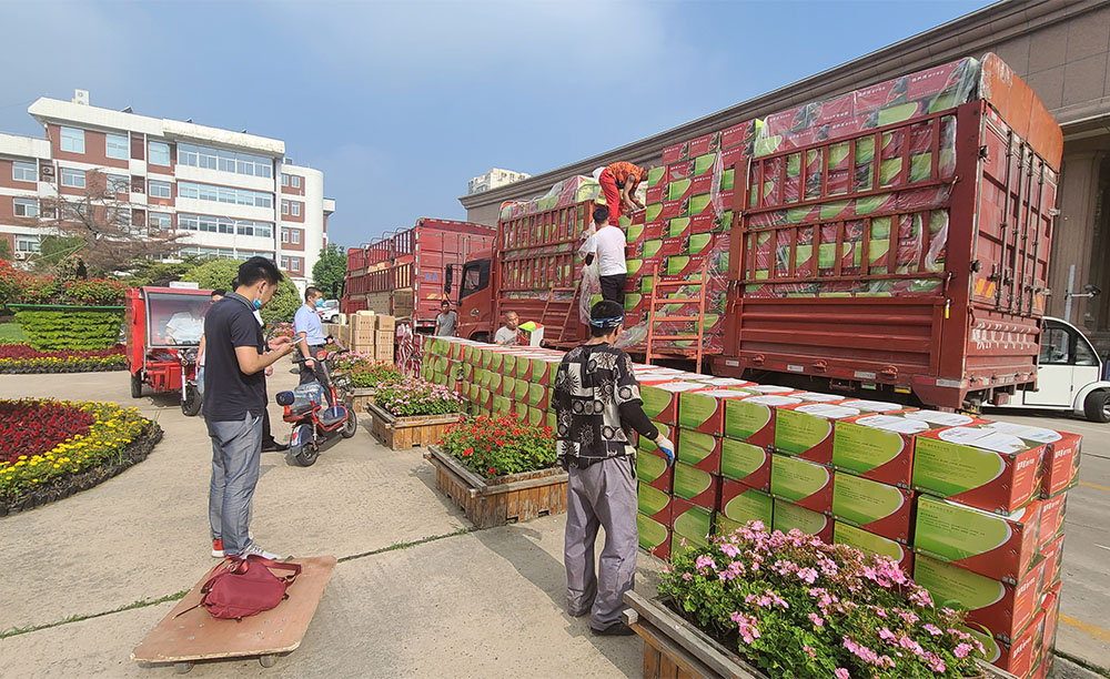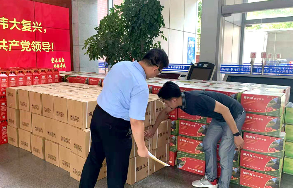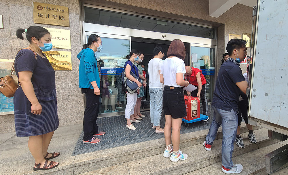 7月7日,5辆满载扶贫农副产品的车辆驶入校园。在校工会常务副主席蒋薇的带领下,专职干部与各分工会教职工冒着酷暑,在校园道路施工不便的条件下,高效有序地把2045个扶贫助力包发放到教职员工手中,获得广大教职工的一致好评。