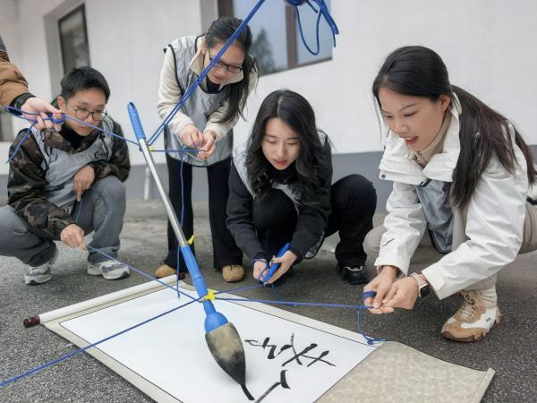 除了红色主题项目,充满趣味与创意的神笔马良有氧鼓环节也让现场气氛热烈神笔马良中,团队成员共同操控巨型毛笔,协作完成崇德”“尚能”“经世”“济民”“教育”“强国文字,在一笔一划间培养了默契与协作精神;有氧鼓将节奏与运动相结合,大家跟着音乐节拍整齐击鼓,在欢快的旋律中释放压力,展现出积极向上的精神风貌。