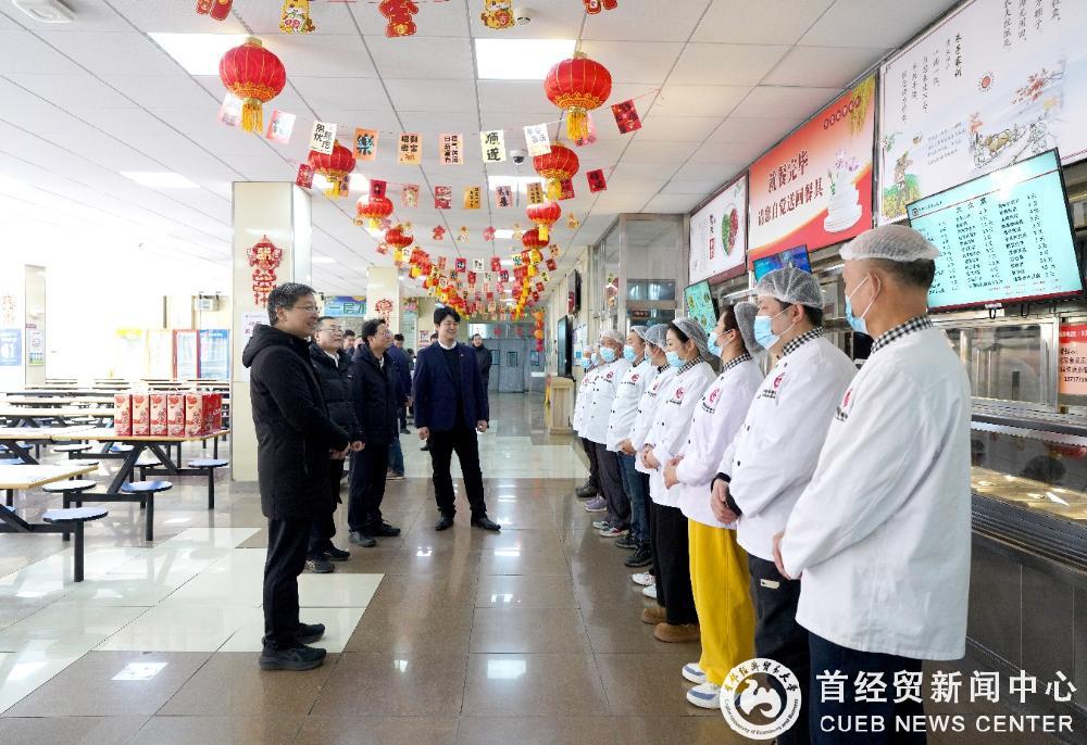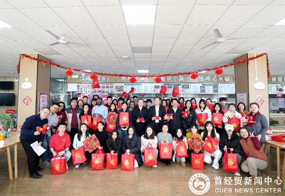 随后,校领导与同学们一同包饺子、话家常,还为学生代表送上精心准备的春节大礼包,向同学们送上新春美好祝愿,并与大家合影留念。留校学子们纷纷表示,虽然今年春节未能与家人团聚,但学校的关怀让大家倍感温暖,在首经贸的大家庭里收获了满满的归属感。